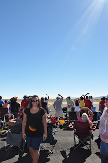 The next weekend, we headed out to Wendover with my parents, my sister, and her boyfriend, Craig, for the air show. TC loves airplanes, and we thought he would love it. We were right. It was a lot of fun watching the show, but we had a little problem with seating. We brought camp chairs to sit in because the show is from 9-3. Unfortunately, the chair I borrowed from my parents had 3 out of the 4 legs broken. Great. Why they kept the chair after it was literally on its last leg is something I am still trying to understand. Nevertheless, it was all we had and my mom was determined to make it work. She rigged the legs together with the straps of the chair cases, and my dad volunteered to sit on it. At first sight, I knew this chair was a ticking time bomb. It was not an "if" but "when" situation. Sure enough, as dear old dad was reaching for the sunblock for the baby - SNAP! My sister signaled me to look back and there he was, booty on the ground, still digging for the sunblock like a soldier. A little boy behind us ran up with a pice of plastic that shot off the chair and handed it to my dad. I. Was. Dying. After laughing for roughly half an hour, I ended up sitting in the baby's stroller for the rest of the show. Notice TC and I are not the same size - it was not cute, but it was fairly convenient... I could roll to wherever I wanted without having to get up. Niiiiice. Not to long after, my sister's boyfriends chair went SNAP! Seriously??? What are the chances? We. All. Were. Dying. I really haven't seen Matt laugh that hard in a long time. Since we were quickly running out of chairs (and strollers) we decided to bail. I wanted a picture of myself with a jet, so I had my sister take one for me. Notice the lack of "jet" in the background. Uhhh... thanks anyway, sis :)